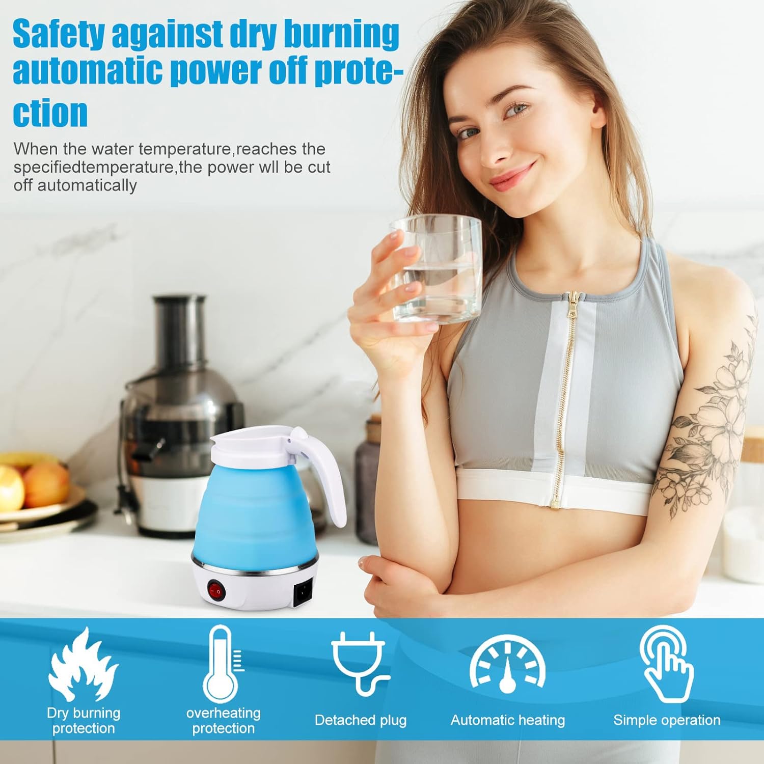 *Este hervidor eléctrico, plegable y ligero es bueno para que lo lleves mientras viajas para ayudarte a ahorrar espacio y hacer que tu viaje sea más cómodo y menos carga.
